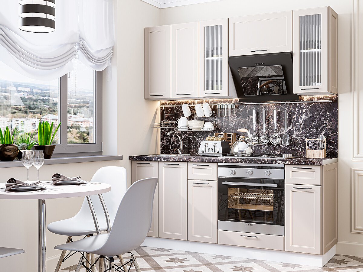 Барселона-01 Кашемир 77580.Расположение Прямая. Размер (В*Ш*Г) мм 2140*1800*600. Цвет каркасов Белый. Материал каркасов ЛДСП. Цвет фасадов Кашемир. Материал фасадов МДФ/Стекло. Отделка фасадов Пленка ПВХ.. Толщина кромки мм .Внимание Ручка в комплект не входит. Для установки мебельных ручек необходимо использовать крепежные винты размером 4*28 мм которые приобретаются отдельно. Также рекомендуем использовать винт сегментный 4*45 из нашего ассортимента. Стекло Рифлёное стекло MORU.. Столешница Мрамор черный. Толщина столешницы мм 38