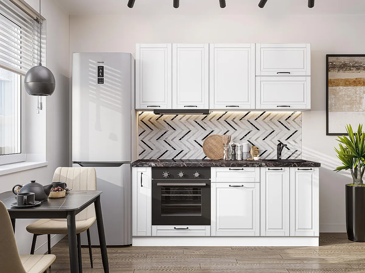 Дублин-01 Special White 74204.Расположение Прямая. Размер (В*Ш*Г) мм 2140*1900*600. Цвет каркасов Белый. Материал каркасов ЛДСП. Цвет фасадов Special White. Материал фасадов МДФ. Отделка фасадов Эмаль высокой прочности Renner (Италия).. Толщина кромки мм .Внимание Ручка в комплект не входит.. Стекло . Столешница Мрамор черный. Толщина столешницы мм 38