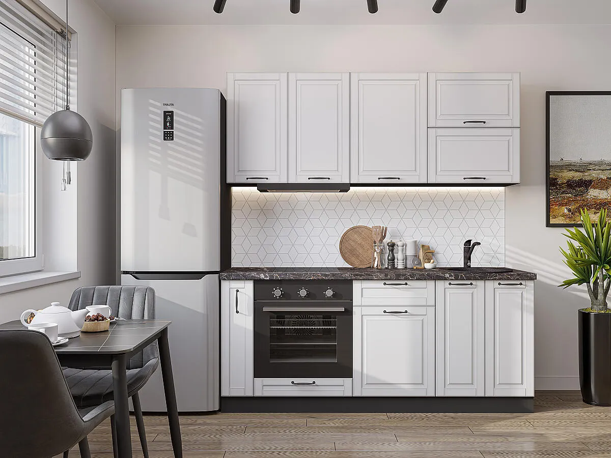 Дублин-01 Special White 74206.Расположение Прямая. Размер (В*Ш*Г) мм 2140*1900*600. Цвет каркасов Graphite. Материал каркасов ЛДСП. Цвет фасадов Special White. Материал фасадов МДФ. Отделка фасадов Эмаль высокой прочности Renner (Италия).. Толщина кромки мм .Внимание Ручка в комплект не входит.. Стекло . Столешница Мрамор черный. Толщина столешницы мм 38