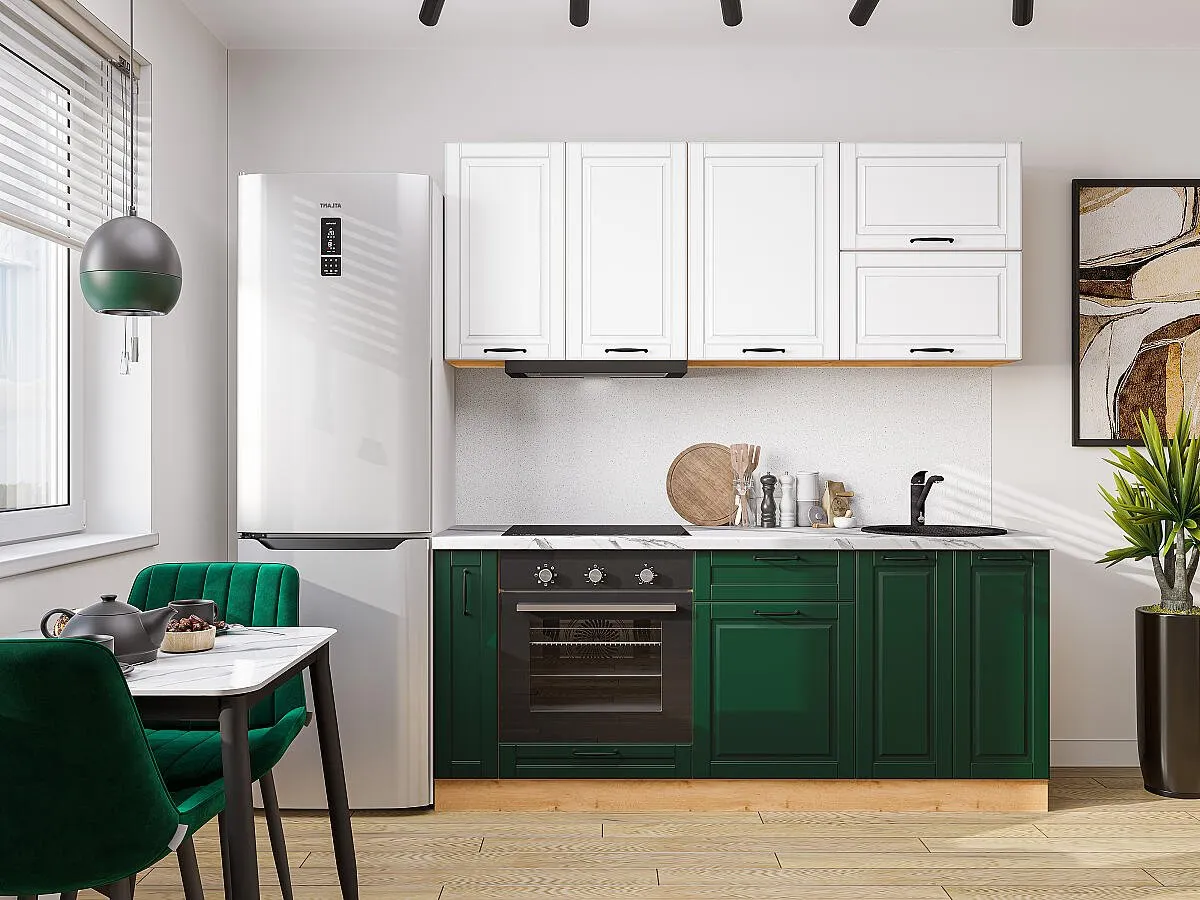 Дублин-01 Special White/Special Green 74210.Расположение Прямая. Размер (В*Ш*Г) мм 2140*1900*600. Цвет каркасов Дуб Вотан. Материал каркасов ЛДСП. Цвет фасадов Special White/Special Green. Материал фасадов МДФ. Отделка фасадов Эмаль высокой прочности Renner (Италия).. Толщина кромки мм .Внимание Ручка в комплект не входит.. Стекло . Столешница Гранит белый. Толщина столешницы мм 38