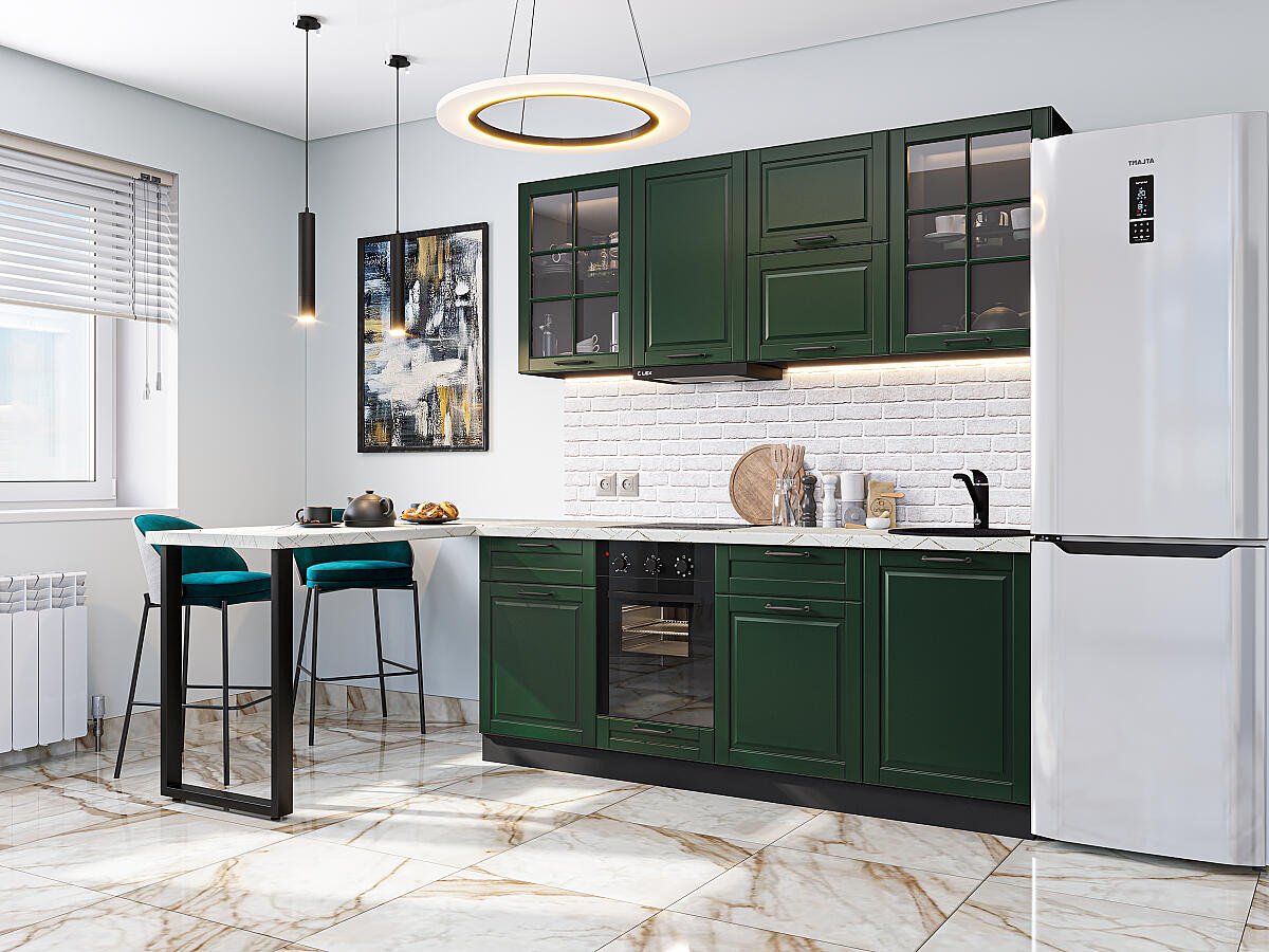Дублин-03 Special Green 75043.Расположение Прямая. Размер (В*Ш*Г) мм 2140*1950*600. Цвет каркасов Graphite. Материал каркасов ЛДСП. Цвет фасадов Special Green. Материал фасадов МДФ/Стекло. Отделка фасадов Эмаль высокой прочности Renner (Италия).. Толщина кромки мм .Внимание Ручка в комплект не входит.. Стекло Стекло прозрачное.. Столешница Пирит светлый. Толщина столешницы мм 38