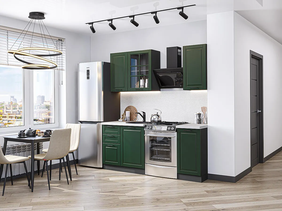 Дублин-04 Special Green 78620.Расположение Прямая. Размер (В*Ш*Г) мм 2140*1300*600. Цвет каркасов Graphite. Материал каркасов ЛДСП. Цвет фасадов Special Green. Материал фасадов МДФ. Отделка фасадов Эмаль высокой прочности Renner (Италия).. Толщина кромки мм .Внимание Ручка в комплект не входит.. Стекло Стекло прозрачное.. Столешница Антарес. Толщина столешницы мм 38