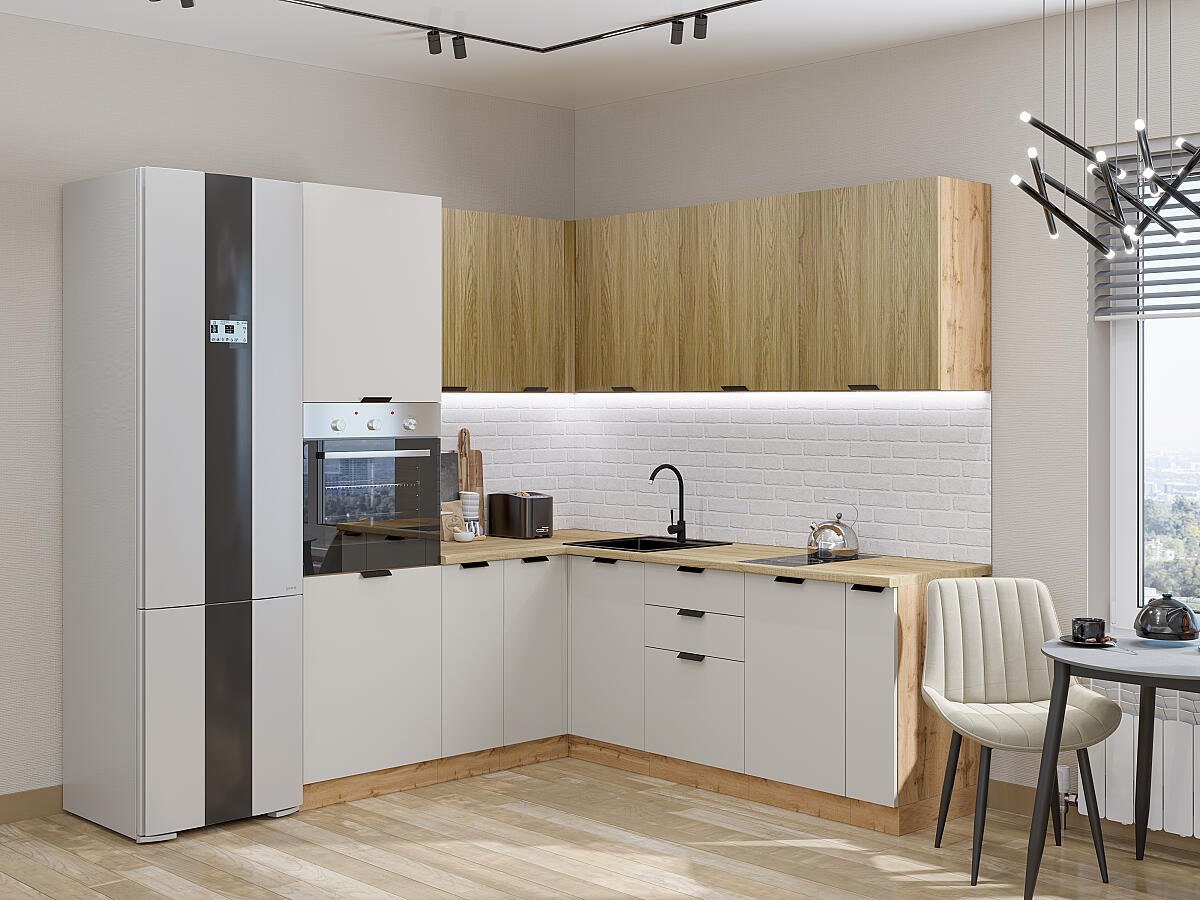 Евро Лайн-04 Дуб песочный/Агат 79784.Расположение Угловая. Размер (В*Ш*Г) мм 2140*1800/2150*600. Цвет каркасов Дуб Вотан. Материал каркасов ЛДСП. Цвет фасадов Дуб песочный/Агат. Материал фасадов МДФ. Отделка фасадов Пленка ПВХ.. Толщина кромки мм .Внимание Ручка в комплект не входит.. Стекло . Столешница Дуб сонома. Толщина столешницы мм 38