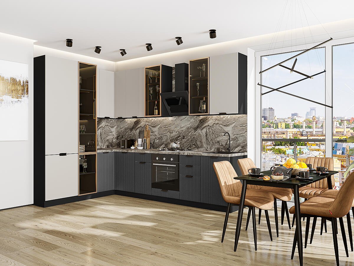 Евро Лайн-07 Агат/Антрацит 79633.Расположение Прямая. Размер (В*Ш*Г) мм 2340*2000/3000*600. Цвет каркасов Graphite. Материал каркасов ЛДСП. Цвет фасадов Агат/Антрацит. Материал фасадов МДФ. Отделка фасадов Пленка ПВХ.. Толщина кромки мм .Внимание Ручка в комплект не входит.. Стекло . Столешница Мрамор горный. Толщина столешницы мм 38