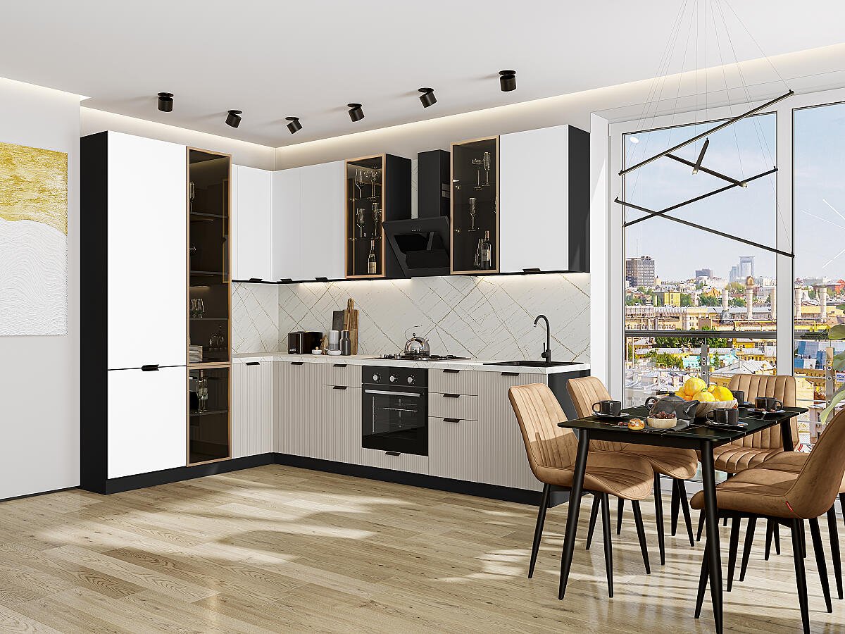 Евро Лайн-07 Белый/Агат 79705.Расположение Прямая. Размер (В*Ш*Г) мм 2340*2000/3000*600. Цвет каркасов Graphite. Материал каркасов ЛДСП. Цвет фасадов Белый/Агат. Материал фасадов МДФ. Отделка фасадов Пленка ПВХ.. Толщина кромки мм .Внимание Ручка в комплект не входит.. Стекло . Столешница Снежный мрамор. Толщина столешницы мм 38