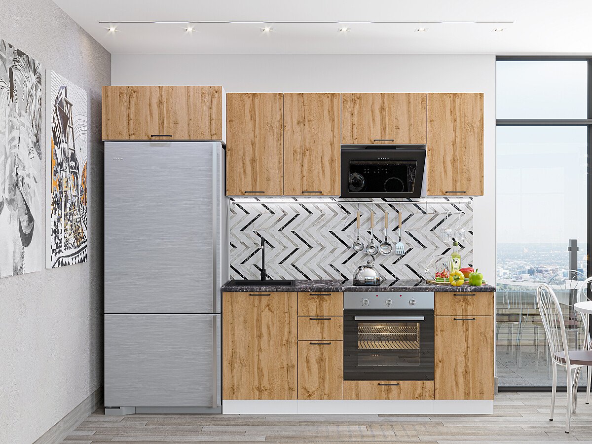 Флэт-01 Wotan Oak 2S 53340.Расположение Прямая. Размер (В*Ш*Г) мм 2140*2600*600. Цвет каркасов Белый. Материал каркасов ЛДСП. Цвет фасадов Wotan Oak 2S. Материал фасадов ЛДСП. Отделка фасадов . Толщина кромки мм 1.Внимание Ручка в комплект не входит.. Стекло . Столешница Мрамор черный. Толщина столешницы мм 38