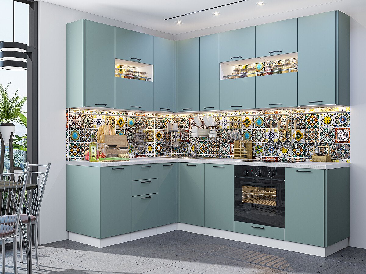 Флэт-02 Grey-green In 2S 57232.Расположение Угловая. Размер (В*Ш*Г) мм 2340*1700/2400*600. Цвет каркасов Белый. Материал каркасов ЛДСП. Цвет фасадов Grey-green In 2S. Материал фасадов ЛДСП. Отделка фасадов . Толщина кромки мм 1.Внимание Ручка в комплект не входит.. Стекло . Столешница Антарес. Толщина столешницы мм 38