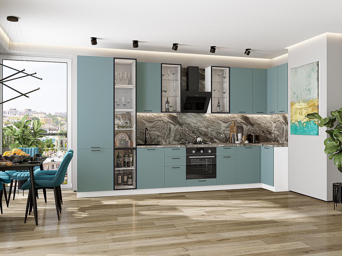 Флэт-05 Grey-green In 2S 79685.Расположение Угловая. Размер (В*Ш*Г) мм 2340*4000/1000*600. Цвет каркасов Белый. Материал каркасов ЛДСП. Цвет фасадов Grey-green In 2S. Материал фасадов ЛДСП. Отделка фасадов . Толщина кромки мм 1.Внимание Ручка в комплект не входит.. Стекло . Столешница Мрамор горный. Толщина столешницы мм 38
