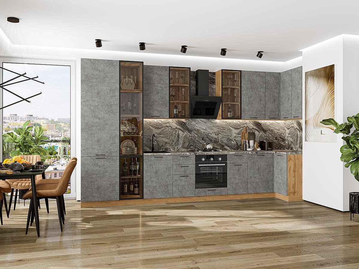 Флэт-05 Temple Stone 2S 79611.Расположение Угловая. Размер (В*Ш*Г) мм 2340*4000/1000*600. Цвет каркасов Дуб Вотан. Материал каркасов ЛДСП. Цвет фасадов Temple Stone 2S. Материал фасадов ЛДСП. Отделка фасадов . Толщина кромки мм 1.Внимание Ручка в комплект не входит.. Стекло . Столешница Мрамор горный. Толщина столешницы мм 38