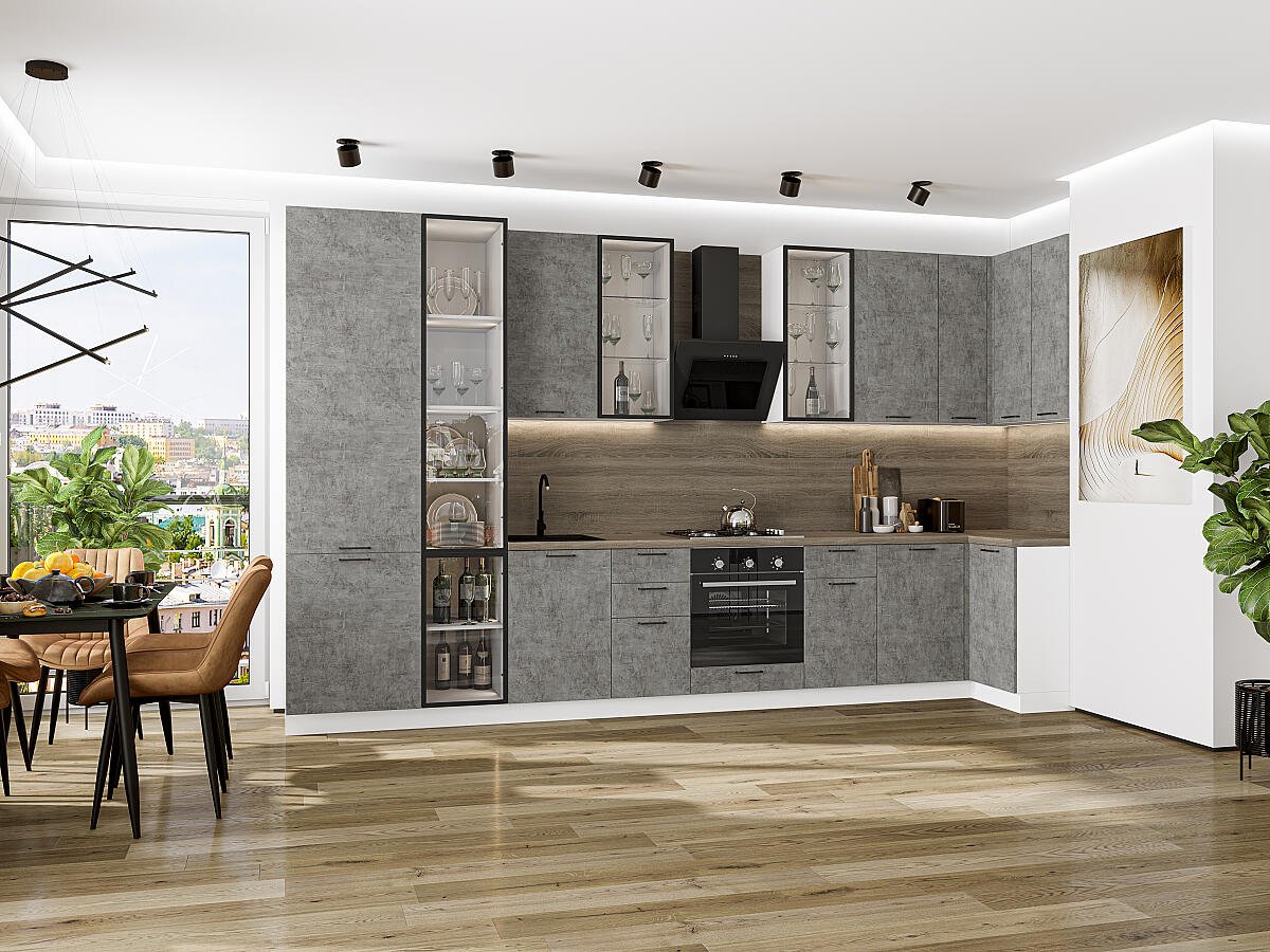 Флэт-05 Temple Stone 2S 79691.Расположение Угловая. Размер (В*Ш*Г) мм 2340*4000/1000*600. Цвет каркасов Белый. Материал каркасов ЛДСП. Цвет фасадов Temple Stone 2S. Материал фасадов ЛДСП. Отделка фасадов . Толщина кромки мм 1.Внимание Ручка в комплект не входит.. Стекло . Столешница Дуб табак. Толщина столешницы мм 38