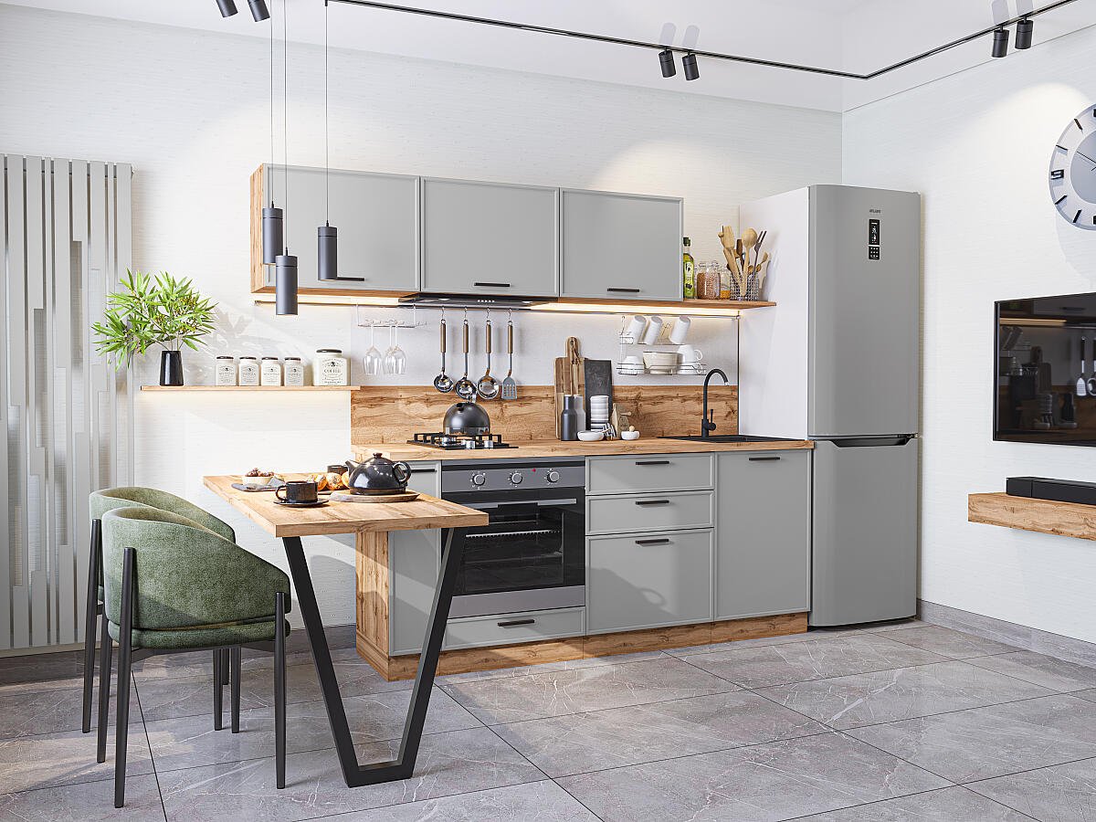 Фрейм-01 Grey Silk 70021.Расположение Прямая. Размер (В*Ш*Г) мм 1782*2300*600. Цвет каркасов Дуб Вотан. Материал каркасов ЛДСП. Цвет фасадов Grey Silk. Материал фасадов МДФ. Отделка фасадов ПЭТ. Толщина кромки мм .Внимание Ручка в комплект не входит.. Стекло . Столешница Дуб натуральный. Толщина столешницы мм 38