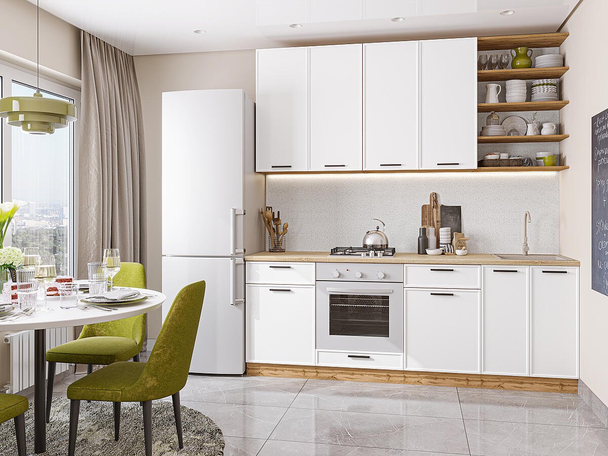 Фрейм-02 White Silk 67040.Расположение Прямая. Размер (В*Ш*Г) мм 2340*2200*600. Цвет каркасов Дуб Вотан. Материал каркасов ЛДСП. Цвет фасадов White Silk. Материал фасадов МДФ. Отделка фасадов ПЭТ. Толщина кромки мм .Внимание Ручка в комплект не входит.. Стекло . Столешница Дуб сонома. Толщина столешницы мм 38