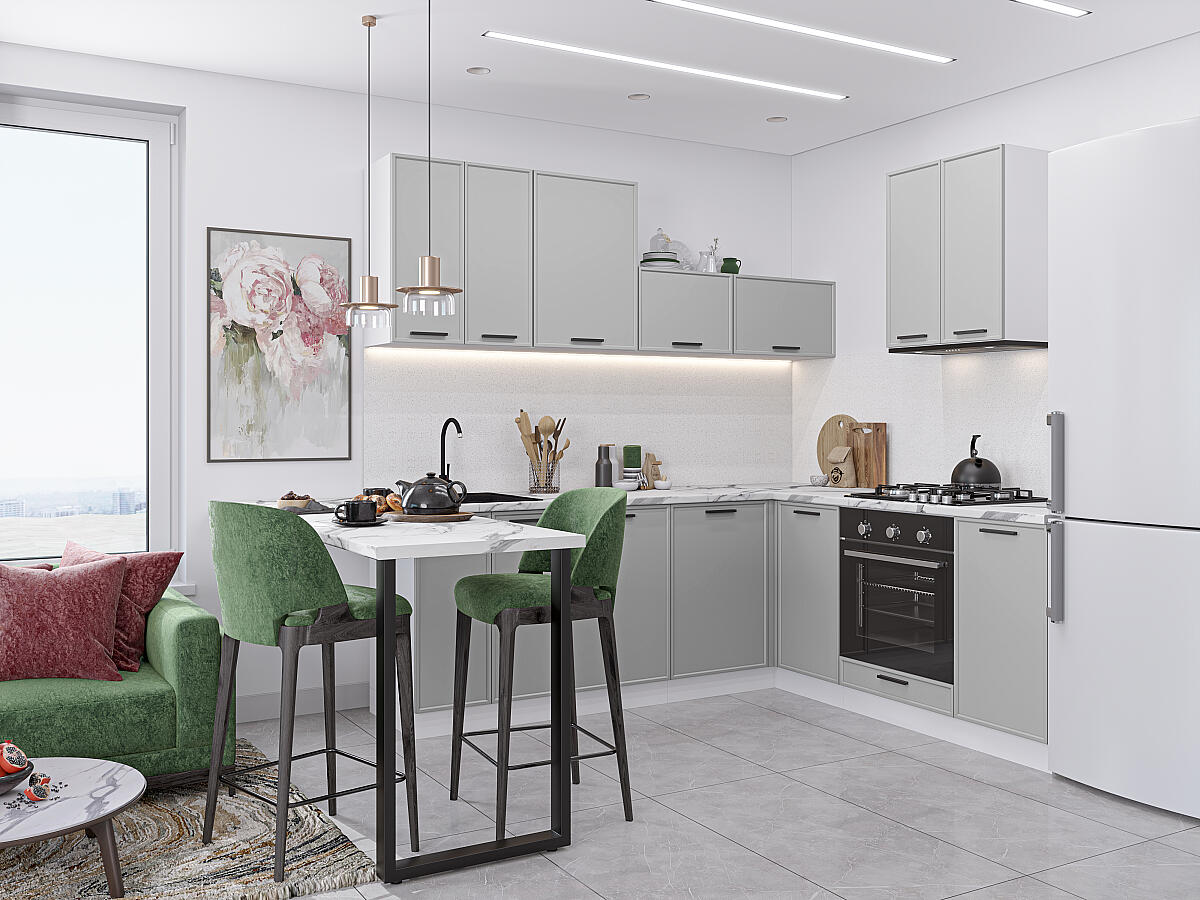 Фрейм-03 Grey Silk 70043.Расположение Угловая. Размер (В*Ш*Г) мм 2140*2200/2000*600. Цвет каркасов Белый. Материал каркасов ЛДСП. Цвет фасадов Grey Silk. Материал фасадов МДФ. Отделка фасадов ПЭТ. Толщина кромки мм .Внимание Ручка в комплект не входит.. Стекло . Столешница Гранит белый. Толщина столешницы мм 38