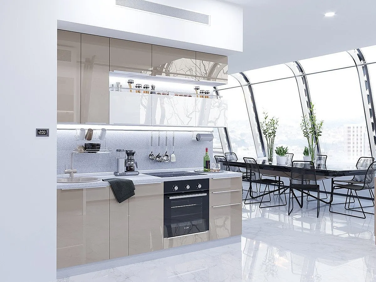Фьюжн-01 Gallant/Angel 29441.Расположение Прямая. Размер (В*Ш*Г) мм 2340*2300*600. Цвет каркасов Белый. Материал каркасов ЛДСП. Цвет фасадов Gallant/Angel. Материал фасадов МДФ. Отделка фасадов Акрилит. Толщина кромки мм 1.Внимание Ручка в комплект не входит.. Стекло . Столешница Кварц белый. Толщина столешницы мм 38