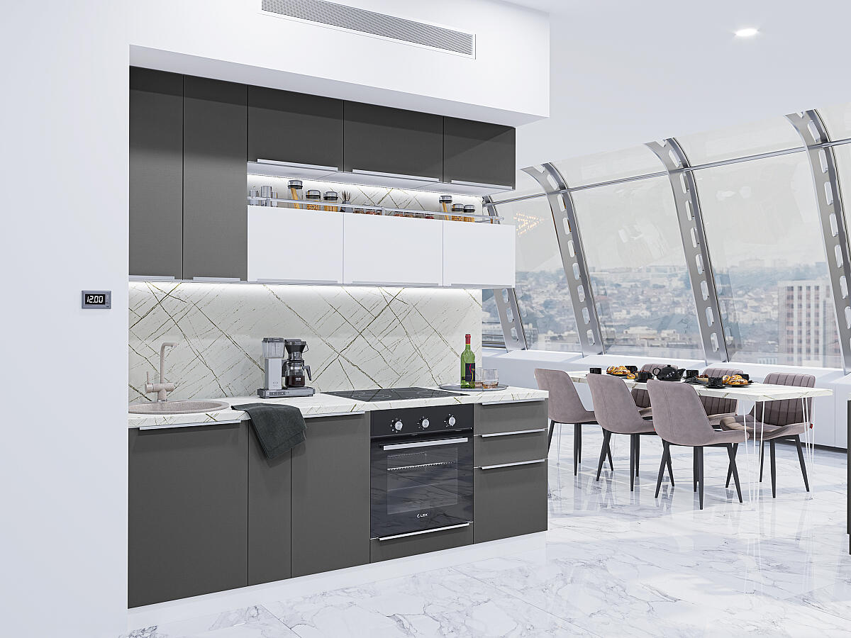 Фьюжн-01 Stormy Silk/Silky White 79722.Расположение Прямая. Размер (В*Ш*Г) мм 2340*2300*600. Цвет каркасов Белый. Материал каркасов ЛДСП. Цвет фасадов Stormy Silk/Silky White. Материал фасадов МДФ. Отделка фасадов ПЭТ. Толщина кромки мм 1.Внимание Ручка в комплект не входит.. Стекло . Столешница Пирит светлый. Толщина столешницы мм 38