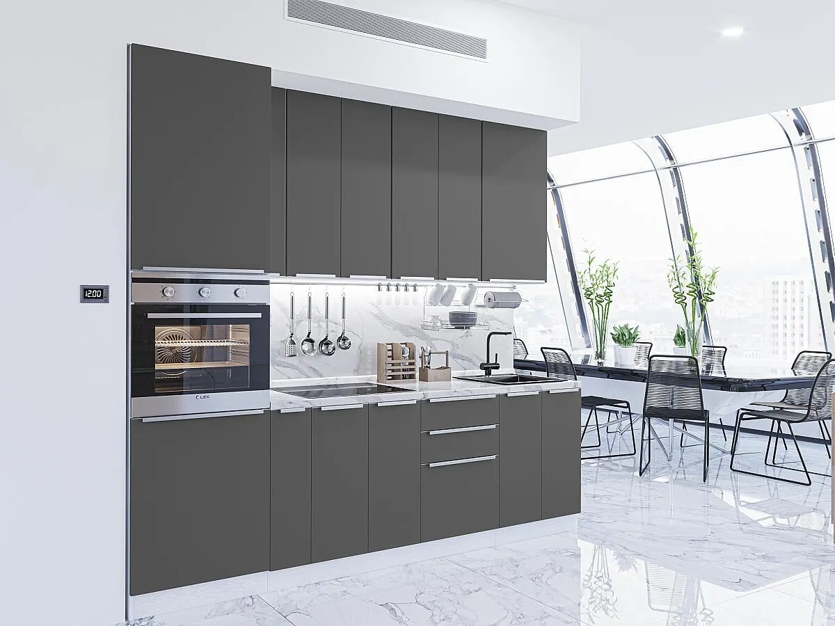 Фьюжн-03 Stormy Silk 79724.Расположение Прямая. Размер (В*Ш*Г) мм 2340*2600*600. Цвет каркасов Белый. Материал каркасов ЛДСП. Цвет фасадов Stormy Silk. Материал фасадов МДФ. Отделка фасадов ПЭТ. Толщина кромки мм 1.Внимание Ручка в комплект не входит.. Стекло . Столешница Гранит белый. Толщина столешницы мм 38