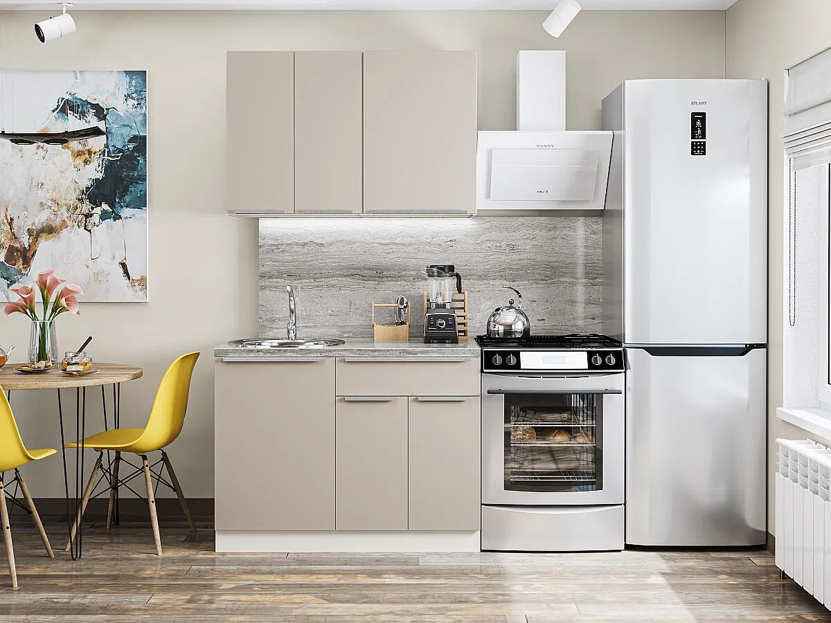 Фьюжн-05 Cream Silk 72073.Расположение Прямая. Размер (В*Ш*Г) мм 2140*1100*600. Цвет каркасов Белый. Материал каркасов ЛДСП. Цвет фасадов Cream Silk. Материал фасадов МДФ. Отделка фасадов ПЭТ. Толщина кромки мм 1.Внимание Ручка в комплект не входит.. Стекло . Столешница Песчаный камень глянец. Толщина столешницы мм 38
