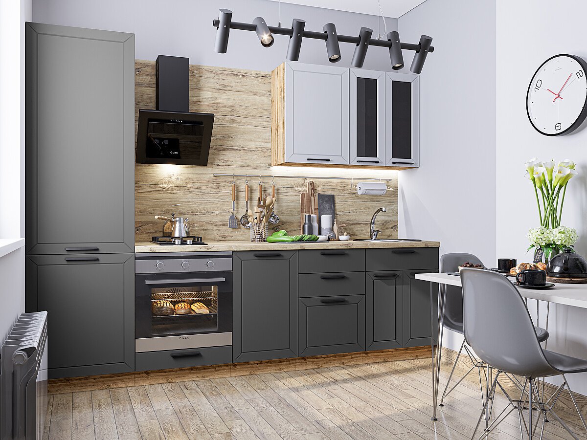 Глетчер-04 Гейнсборо Силк/Маренго Силк 77646.Расположение Прямая. Размер (В*Ш*Г) мм 2140*2700*600. Цвет каркасов Дуб Вотан. Материал каркасов ЛДСП. Цвет фасадов Гейнсборо Силк/Маренго Силк. Материал фасадов МДФ/Стекло. Отделка фасадов Пленка ПВХ «Soft Touch».. Толщина кромки мм .В комплект входит ручка профильная № 104 в цвете Антрацит с межцентровым расстоянием 160 мм. Стекло Lacobel Black. Столешница Редондо. Толщина столешницы мм 38