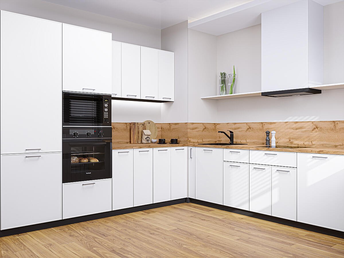 Квадро-02 Белый 74593.Расположение Угловая. Размер (В*Ш*Г) мм 2140*2400/2150*600. Цвет каркасов Graphite. Материал каркасов ЛДСП. Цвет фасадов Белый. Материал фасадов МДФ. Отделка фасадов Пленка ПВХ.. Толщина кромки мм .Внимание Ручка в комплект не входит.. Стекло . Столешница Дуб натуральный. Толщина столешницы мм 38