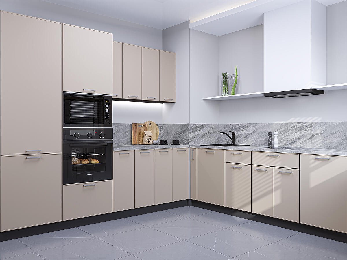 Квадро-02 Кашемир 74596.Расположение Угловая. Размер (В*Ш*Г) мм 2140*2400/2150*600. Цвет каркасов Graphite. Материал каркасов ЛДСП. Цвет фасадов Кашемир. Материал фасадов МДФ. Отделка фасадов Пленка ПВХ.. Толщина кромки мм .Внимание Ручка в комплект не входит.. Стекло . Столешница Снежный мрамор. Толщина столешницы мм 38