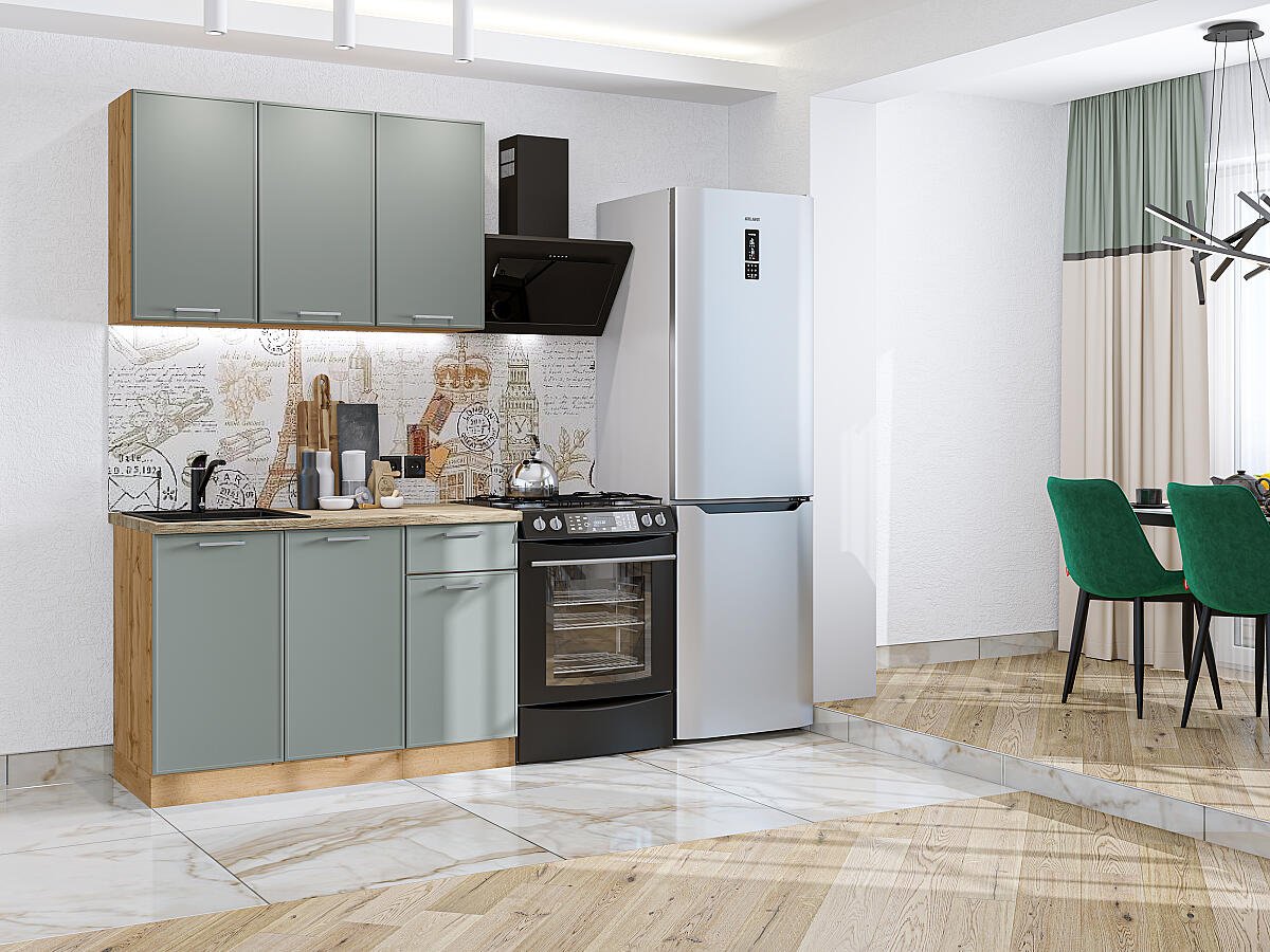 Квадро-03 Аквамарин 78606.Расположение Прямая. Размер (В*Ш*Г) мм 2140*1200*600. Цвет каркасов Дуб Вотан. Материал каркасов ЛДСП. Цвет фасадов Аквамарин. Материал фасадов МДФ. Отделка фасадов Пленка ПВХ.. Толщина кромки мм .Внимание Ручка в комплект не входит.. Стекло . Столешница Редондо. Толщина столешницы мм 38