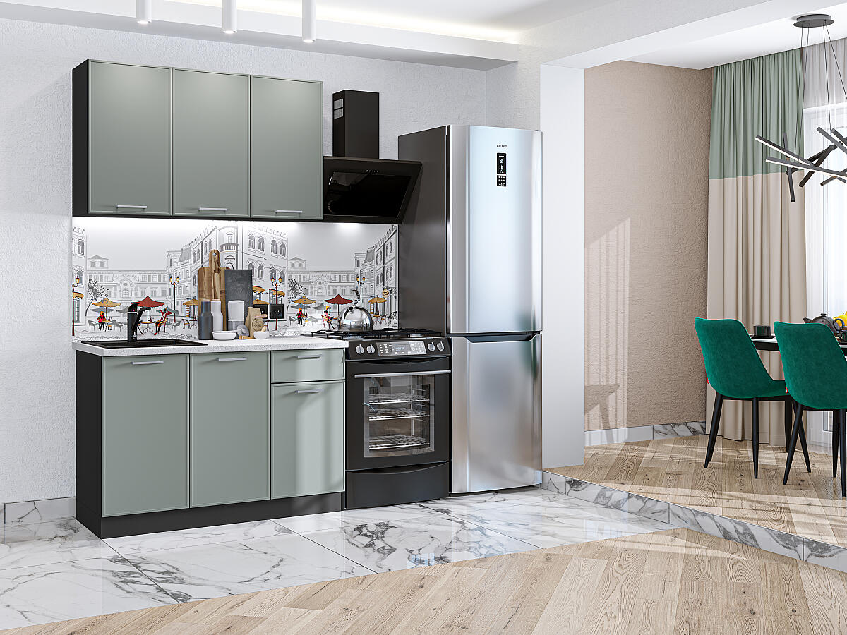 Квадро-03 Аквамарин 78607.Расположение Прямая. Размер (В*Ш*Г) мм 2140*1200*600. Цвет каркасов Graphite. Материал каркасов ЛДСП. Цвет фасадов Аквамарин. Материал фасадов МДФ. Отделка фасадов Пленка ПВХ.. Толщина кромки мм .Внимание Ручка в комплект не входит.. Стекло . Столешница Антарес. Толщина столешницы мм 38