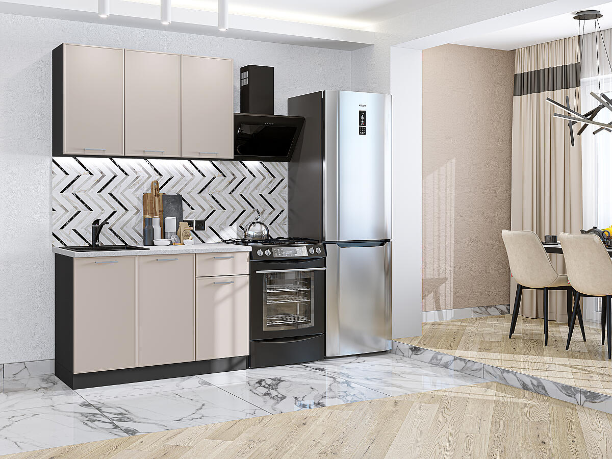 Квадро-03 Кашемир 78604.Расположение Прямая. Размер (В*Ш*Г) мм 2140*1200*600. Цвет каркасов Graphite. Материал каркасов ЛДСП. Цвет фасадов Кашемир. Материал фасадов МДФ. Отделка фасадов Пленка ПВХ.. Толщина кромки мм .Внимание Ручка в комплект не входит.. Стекло . Столешница Антарес. Толщина столешницы мм 38
