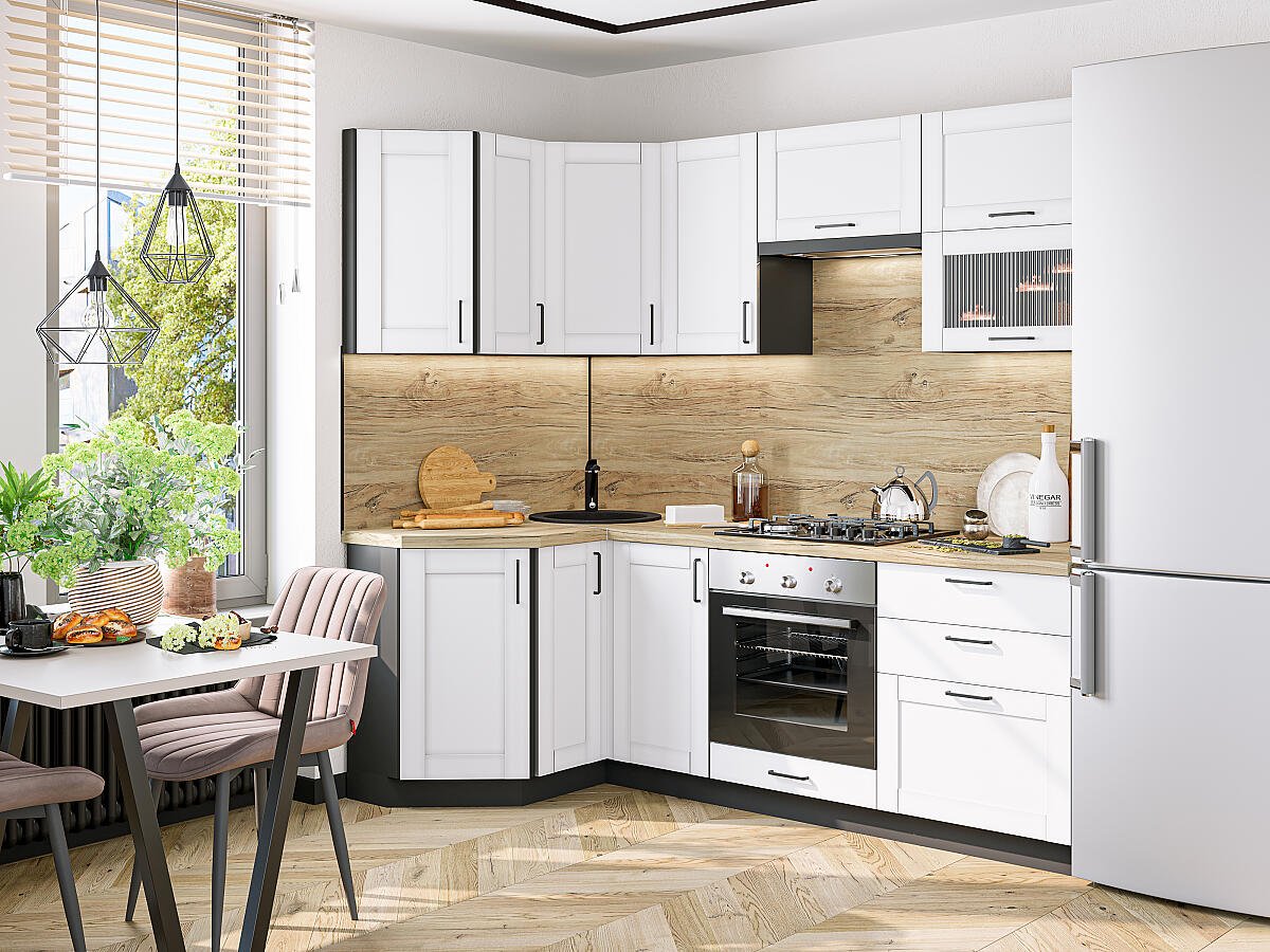 Лофт-03 White Silk 71788.Расположение Угловая. Размер (В*Ш*Г) мм 2140*1200/2200*600. Цвет каркасов Graphite. Материал каркасов ЛДСП. Цвет фасадов White Silk. Материал фасадов МДФ/Стекло. Отделка фасадов ПЭТ. Толщина кромки мм .. Стекло Рифлёное Magic Moru V.. Столешница Редондо. Толщина столешницы мм 38