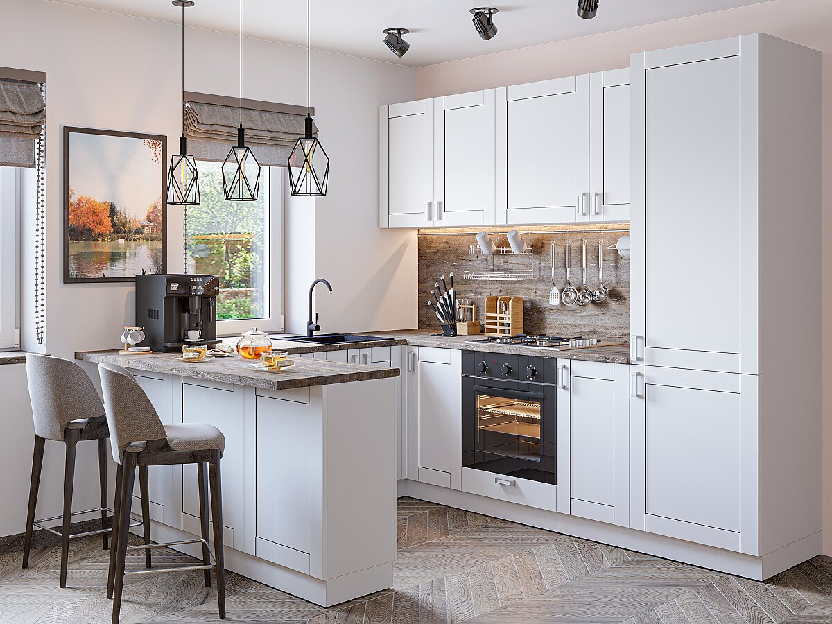 Лофт-06 Super White 65641.Расположение Угловая. Размер (В*Ш*Г) мм 2140*1500/2300/2600*600. Цвет каркасов Белый. Материал каркасов ЛДСП. Цвет фасадов Super White. Материал фасадов МДФ. Отделка фасадов Винил — структурный материал с защитным слоем Overlay и мелкозернистой поверхностью (Южная Корея). Отделка осуществляется с использованием PUR-клея необратимой полимеризации.. Толщина кромки мм .. Стекло . Столешница Дуб темный. Толщина столешницы мм 38