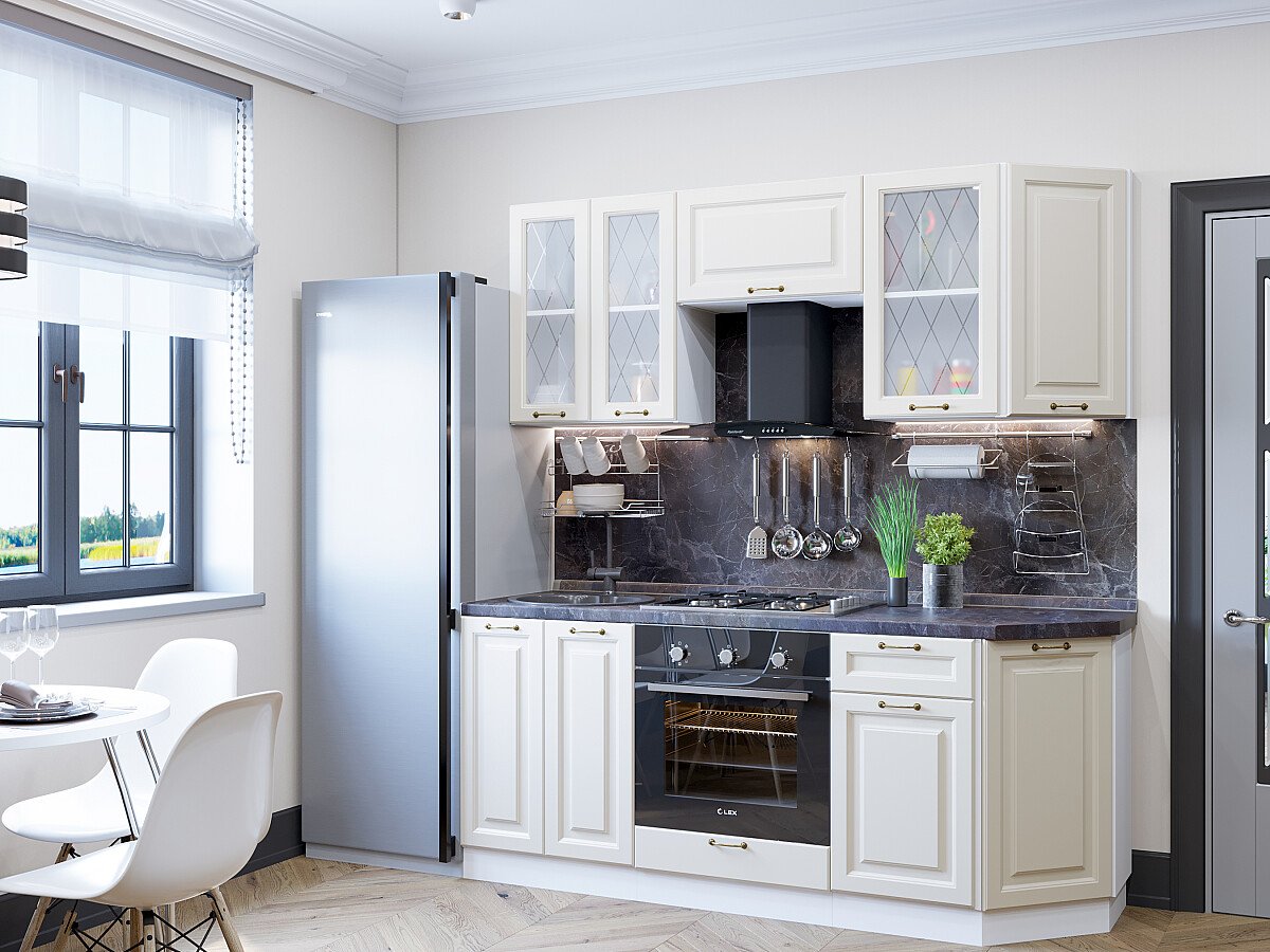 Ницца-01 Агат 77607.Расположение Прямая. Размер (В*Ш*Г) мм 2140*1900*600. Цвет каркасов Белый. Материал каркасов ЛДСП. Цвет фасадов Агат. Материал фасадов МДФ/Стекло. Отделка фасадов Пленка ПВХ.. Толщина кромки мм .В комплект входит ручка-скоба F351 в цвете Античная бронза с межцентровым расстоянием 96 мм. Стекло White Сrystal — белое художественное сатинато. Рисунок нанесен пескоструем.. Столешница Мрамор черный. Толщина столешницы мм 38
