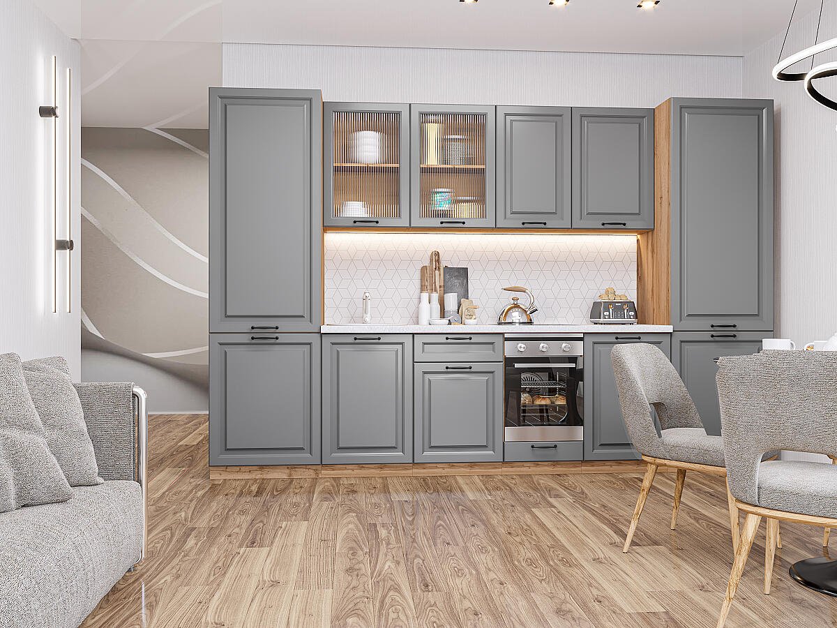 Ницца Royal-01 Magnum 68709.Расположение Прямая. Размер (В*Ш*Г) мм 2140*3150*600. Цвет каркасов Дуб Вотан. Материал каркасов ЛДСП. Цвет фасадов Magnum. Материал фасадов МДФ. Отделка фасадов Эмаль высокой прочности Renner (Италия).. Толщина кромки мм .Внимание Ручка в комплект не входит.. Стекло . Столешница Антарес. Толщина столешницы мм 38