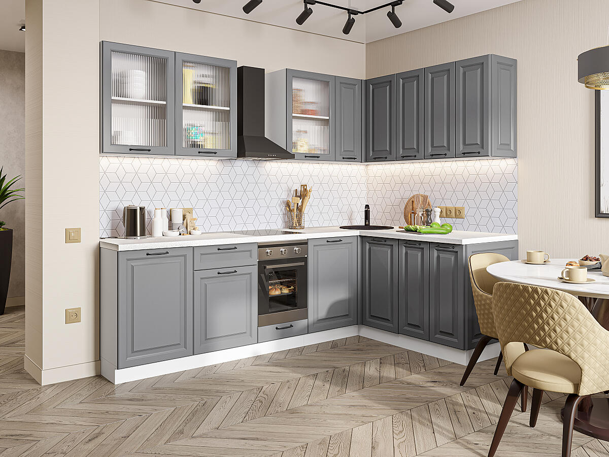 Ницца Royal-02 Magnum 77636.Расположение Угловая. Размер (В*Ш*Г) мм 2140*2550/1600*600. Цвет каркасов Белый. Материал каркасов ЛДСП. Цвет фасадов Magnum. Материал фасадов МДФ/Стекло. Отделка фасадов Эмаль высокой прочности Renner (Италия).. Толщина кромки мм .Внимание Ручка в комплект не входит.. Стекло Рифлёное стекло MORU.. Столешница Антарес. Толщина столешницы мм 38