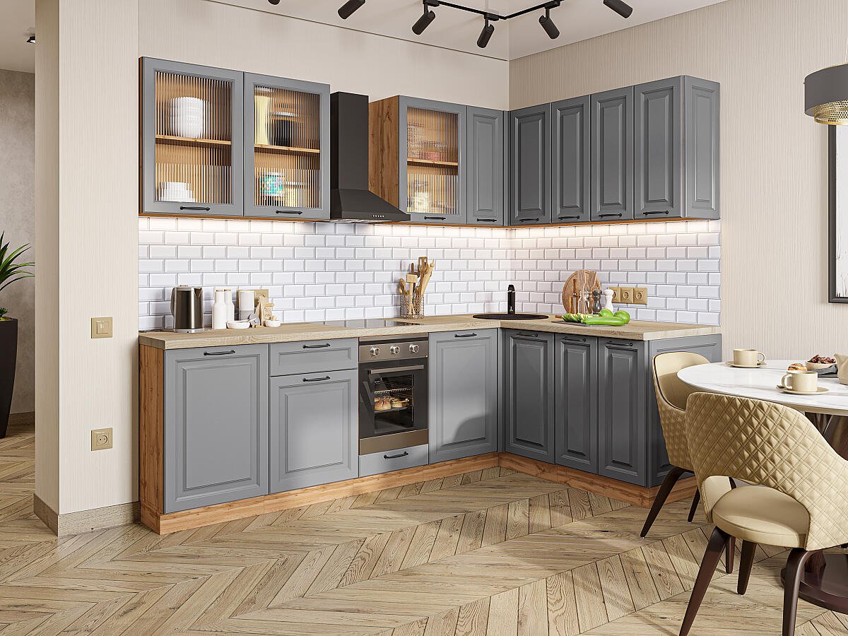 Ницца Royal-02 Magnum 77638.Расположение Угловая. Размер (В*Ш*Г) мм 2140*2550/1600*600. Цвет каркасов Дуб Вотан. Материал каркасов ЛДСП. Цвет фасадов Magnum. Материал фасадов МДФ/Стекло. Отделка фасадов Эмаль высокой прочности Renner (Италия).. Толщина кромки мм .Внимание Ручка в комплект не входит.. Стекло Рифлёное стекло MORU.. Столешница Дуб сонома. Толщина столешницы мм 38