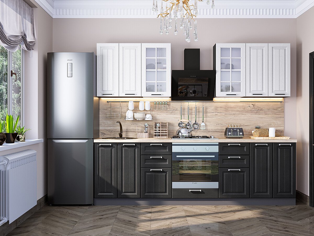 Прага-01 Белое дерево/Венге Премиум 77650.Расположение Прямая. Размер (В*Ш*Г) мм 2140*2600*600. Цвет каркасов Graphite. Материал каркасов ЛДСП. Цвет фасадов Белое дерево/Венге Премиум. Материал фасадов МДФ/Стекло. Отделка фасадов Пленка ПВХ.. Толщина кромки мм .В комплект входит ручка скоба С-19 в цвете Металлик/Венге с межцентровым расстоянием 128 мм. Стекло Сатинато белое.. Столешница Дуб натуральный. Толщина столешницы мм 38