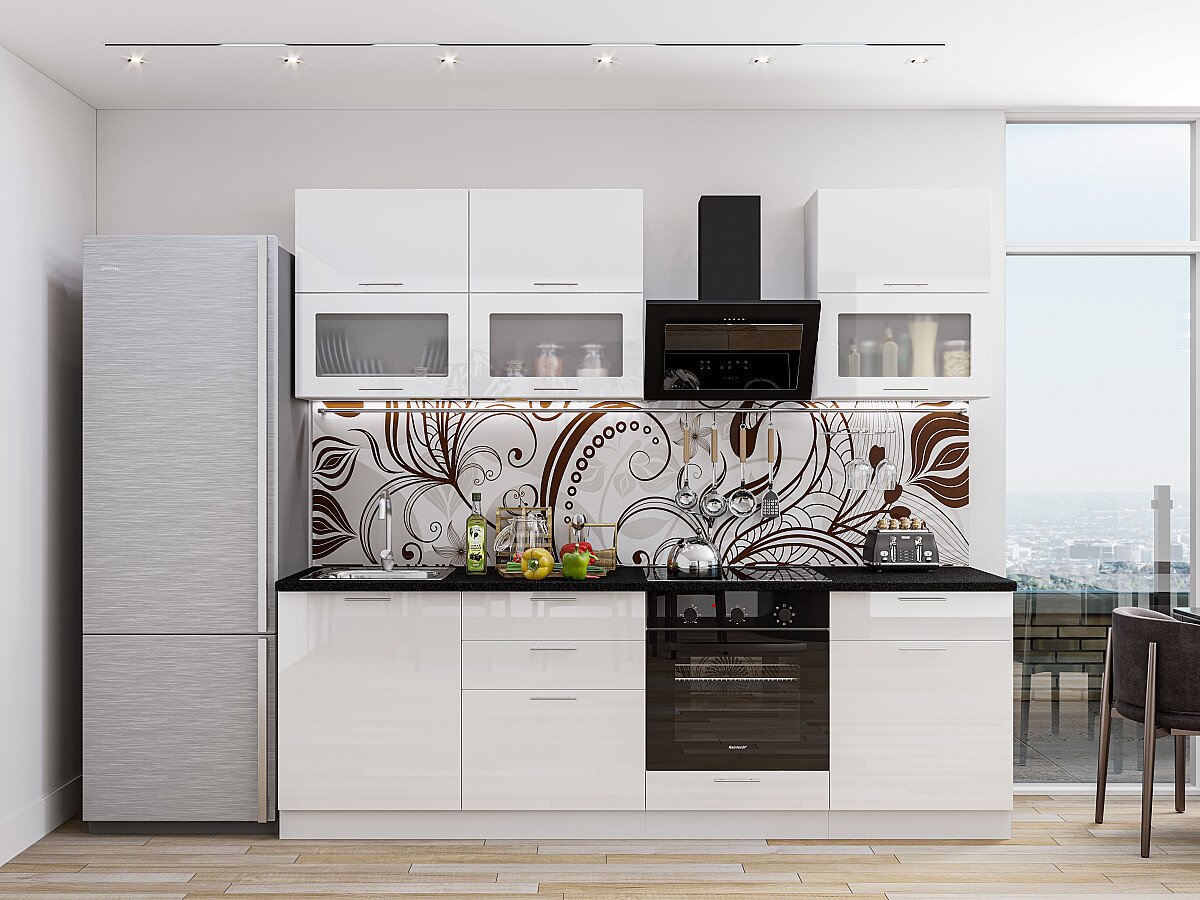 Валерия-М-01 Белый глянец 23692.Расположение Прямая. Размер (В*Ш*Г) мм 2140*1800*600. Цвет каркасов Белый. Материал каркасов ЛДСП. Цвет фасадов Белый глянец. Материал фасадов МДФ/Стекло. Отделка фасадов Пленка ПВХ.. Толщина кромки мм .В комплект входит ручка рейлинг в цвете Хром/Глянец с межцентровым расстоянием 96 мм. Стекло Сатинато белое.. Столешница Гэлакси. Толщина столешницы мм 38