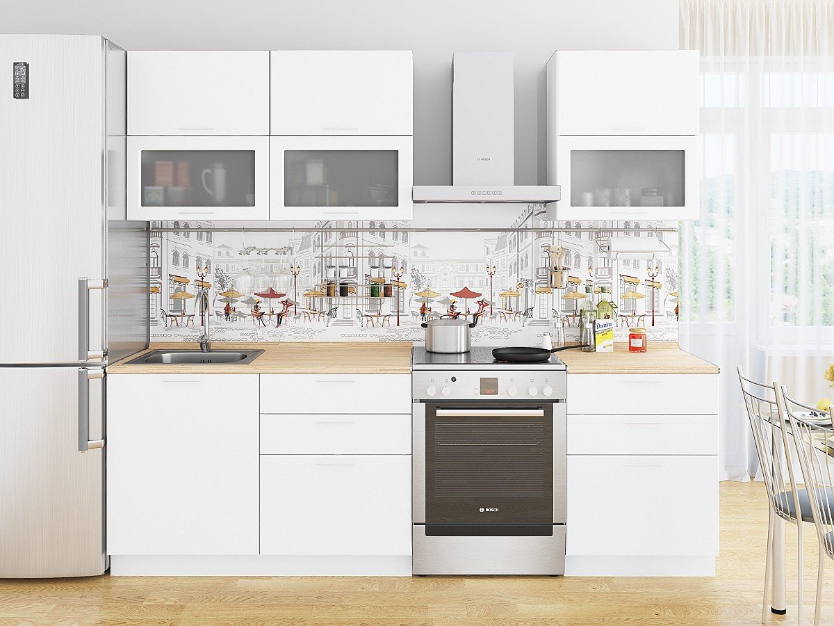 Валерия-М-01 Белый металлик 23693.Расположение Прямая. Размер (В*Ш*Г) мм 2140*1800*600. Цвет каркасов Белый. Материал каркасов ЛДСП. Цвет фасадов Белый металлик. Материал фасадов МДФ/Стекло. Отделка фасадов Пленка ПВХ.. Толщина кромки мм .В комплект входит ручка рейлинг в цвете Хром/Глянец с межцентровым расстоянием 96 мм. Стекло Сатинато белое.. Столешница Дуб сонома. Толщина столешницы мм 38