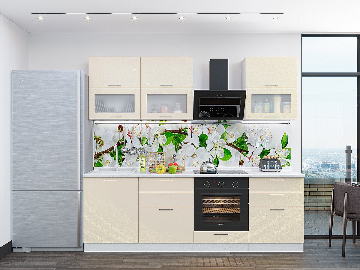 Валерия-М-01 Бежевый металлик 51459.Расположение Прямая. Размер (В*Ш*Г) мм 2140*2400*600. Цвет каркасов Белый. Материал каркасов ЛДСП. Цвет фасадов Бежевый металлик. Материал фасадов МДФ/Стекло. Отделка фасадов Пленка ПВХ.. Толщина кромки мм .В комплект входит ручка рейлинг в цвете Хром/Глянец с межцентровым расстоянием 96 мм. Стекло Сатинато белое.. Столешница Гранит белый. Толщина столешницы мм 38