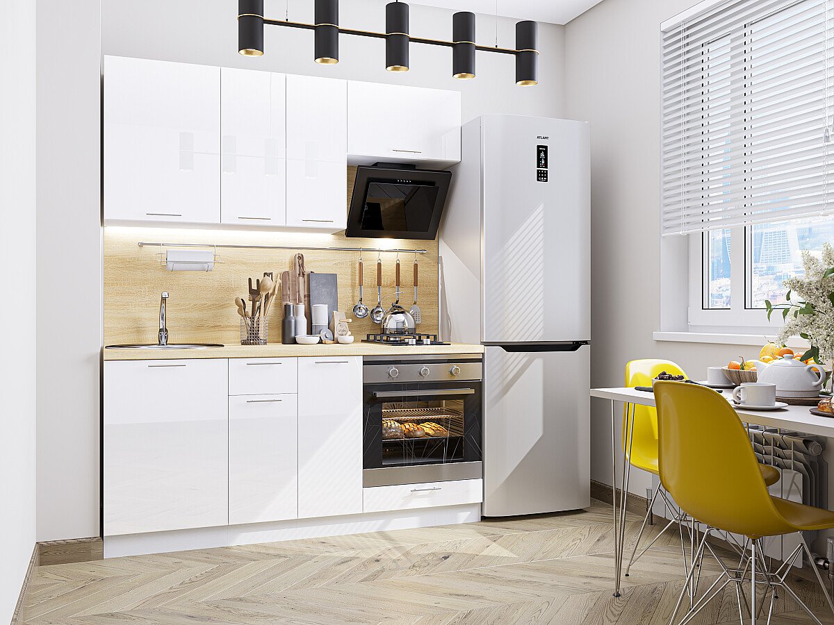Валерия-М-06 Белый глянец 66764.Расположение Прямая. Размер (В*Ш*Г) мм 2140*1700*600. Цвет каркасов Белый. Материал каркасов ЛДСП. Цвет фасадов Белый глянец. Материал фасадов МДФ. Отделка фасадов Пленка ПВХ.. Толщина кромки мм .В комплект входит ручка рейлинг в цвете Хром/Глянец с межцентровым расстоянием 96 мм. Стекло . Столешница Дуб сонома. Толщина столешницы мм 38